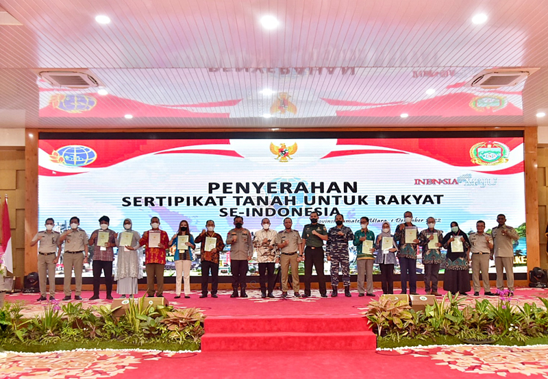 Sebelumnya, Presiden Jokowi didampingi Menteri ATR/Kepala BPN, Kapolri Jenderal Listyo Sigit Prabowo serta sejumlah pejabat, menyampaikan penekanan terkait pemberian sertifikat tanah sebagai tanda hak hukum yang sangat penting, karena menyangkut hajat hidup orang banyak dan menghindari konflik pertanahan.