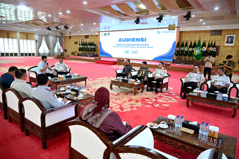 Sementara itu, Kepala Kanwil Imigrasi Sumut, Parlindungan, menyampaikan apresiasi atas dukungan yang diberikan Pemprov Sumut. Ia memaparkan perkembangan tugas keimigrasian di empat Kantor Imigrasi (Kanim) di wilayah Sumut serta upaya mitigasi terhadap berbagai persoalan orang asing.