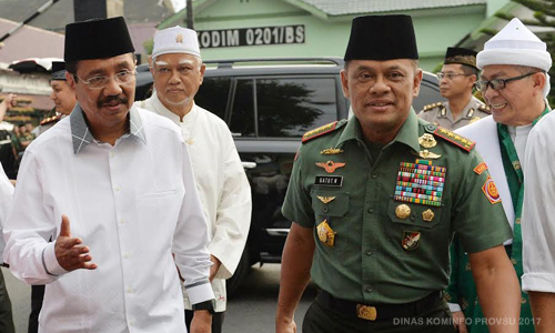 Selain itu, hadir Gubernur Sumatera Utara (Gubsu) Tengku Erry Nuradi, Kapolda Sumut Irjen Pol Rycko Amelza Dahniel, Wali Kota Medan Dzulmi Eldin, tokoh masyarakat Abdillah, Syamsul Arifin, para ulama, para cendikiawan dan undangan. Panglima TNI didampingi Pangkostrad Letjen TNI Edy Rahmayadi dan Pangdam I/BB Mayjen TNI Cucu Sumantri.