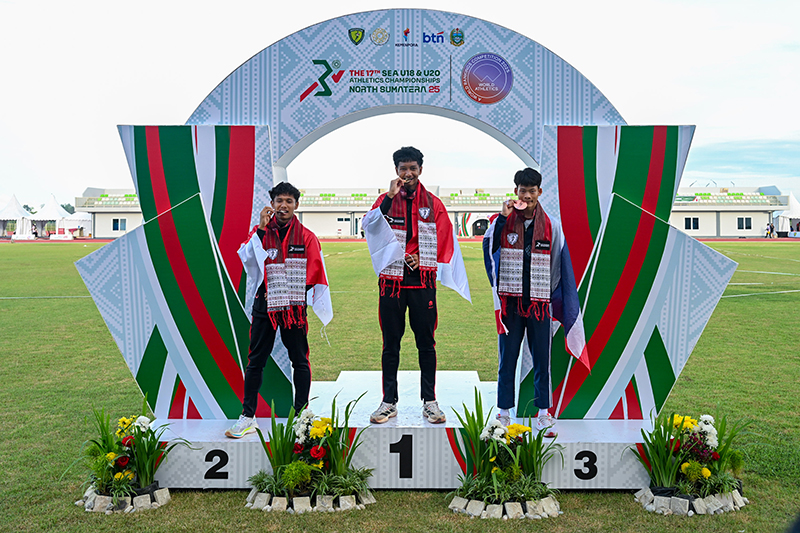 DELISERDANG, 15/11 - Hari pertama Kejuaraan Atletik U18 & U20 Asia Tenggara yang digelar di Sumatera Utara (Sumut), berakhir dengan prestasi membanggakan bagi Indonesia. Tim Merah Putih menempati posisi kedua klasemen sementara dengan perolehan 13 medali, yaitu 4 emas, 4 perak, dan 5 perunggu.
