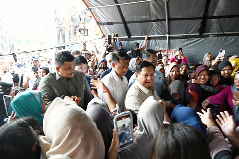 “Tadi sudah dilaporkan gubernur, kekurangan air bersih, air minum, perbaikan tanggul segera kita lakukan, panglima TNI akan kita kerahkan, PU akan kita kerahkan, angkatan darat, kepolisian akan kita kerahkan, semua kekuatan kita,” kata Prabowo didampingi Gubernur Sumut Bobby Nasution dihadapan pengungsi.