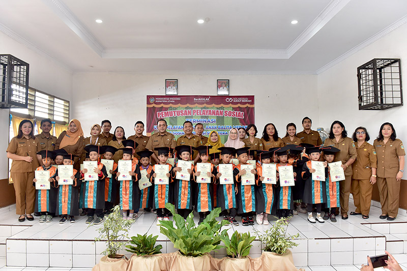 MEDAN, 24/6 - Dinas Sosial Sumatera Utara (Sumut) melepas 31 anak Pemerlu Pelayanan Kesejahteraan Sosial (PPKS) yang selama ini mendapat pengasuhan di Unit Pelayanan Teknis Daerah (UPTD) Pelayanan Sosial Anak Balita Medan, Selasa (24/6/2025). Dinas Sosial Sumut pun berharap pengasuhan berupa Pendidikan Anak Usia Dini (PAUD) yang diberikan pada anak-anak asuh tersebut bermanfaat besar.