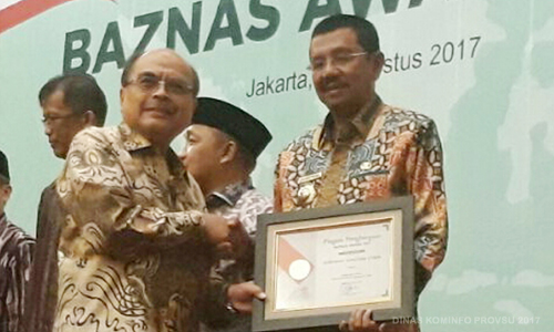 Medan, 26/8 - Gubernur Sumatera Utara (Gubsu) Tengku Erry Nuradi menerima Penghargaan Khusus Pendukung Kebangkitan Zakat pada acara pemberian anugerah Baznas Awards 2017 di Ge...