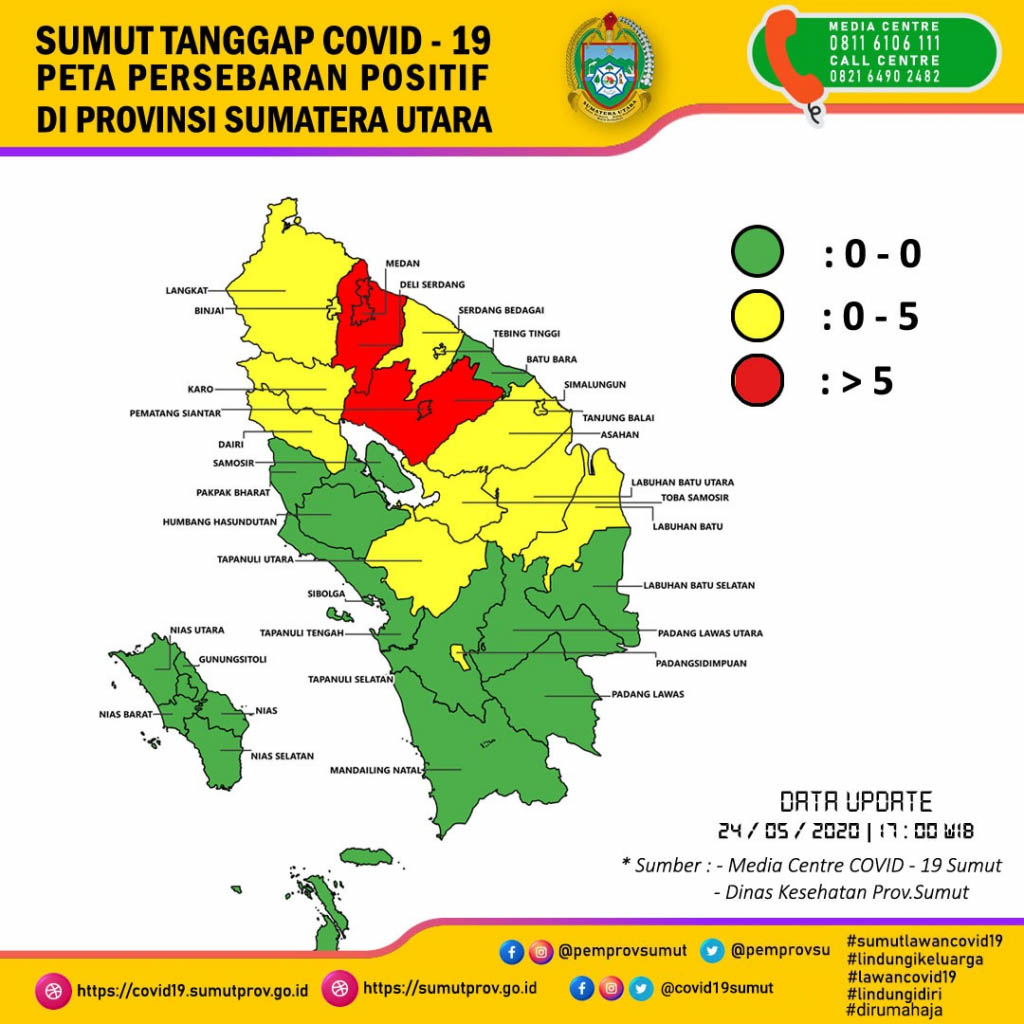 Peta Persebaran Positif di Provinsi Sumatera Utara, 24 Mei 2020